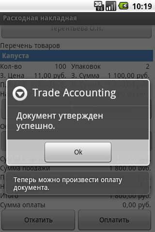 По кнопке «Меню» телефона откроем меню опций и нажмем «Новый документ». Откроется новый заказ от клиента. Заполним основные поля заказа аналогично расходной накладной.